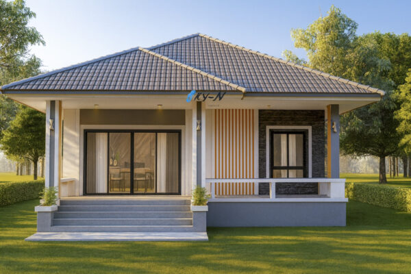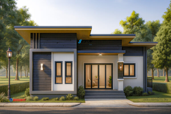 S-9166 แบบบ้านหลังนี้ออกแบบในสไตล์ Modern Tropical พื้นที่ใช้สอย 110 ตร.ม. 3 ห้องนอน 2ห้องน้ำ ราคา 5,500 บาท