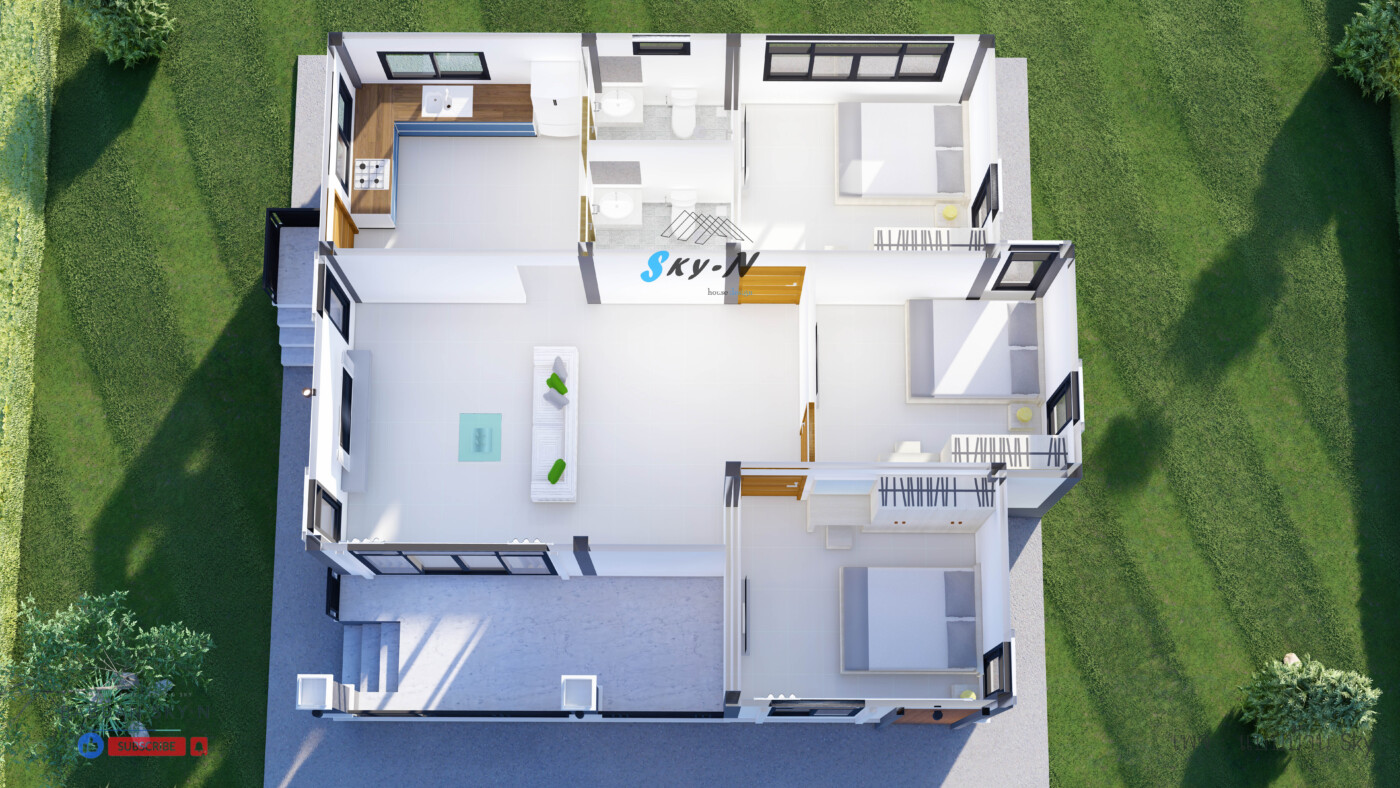 – หลังคาทรง จั่วซ้อน (Double-Gable Roof) ซึ่งเป็นรูปแบบคลาสสิกที่ให้ความรู้สึกไทยร่วมสมัย