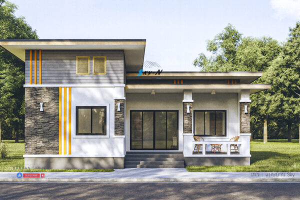 S-6014 แบบบ้านชั้นเดียวในสไตล์ โมเดิร์นร่วมสมัย พื้นที่ใช้สอย 105 ตรารางเมตร 3 ห้องนอน 2ห้องน้ำ ราคา 5,000 บาท