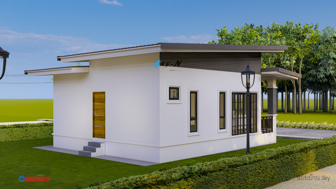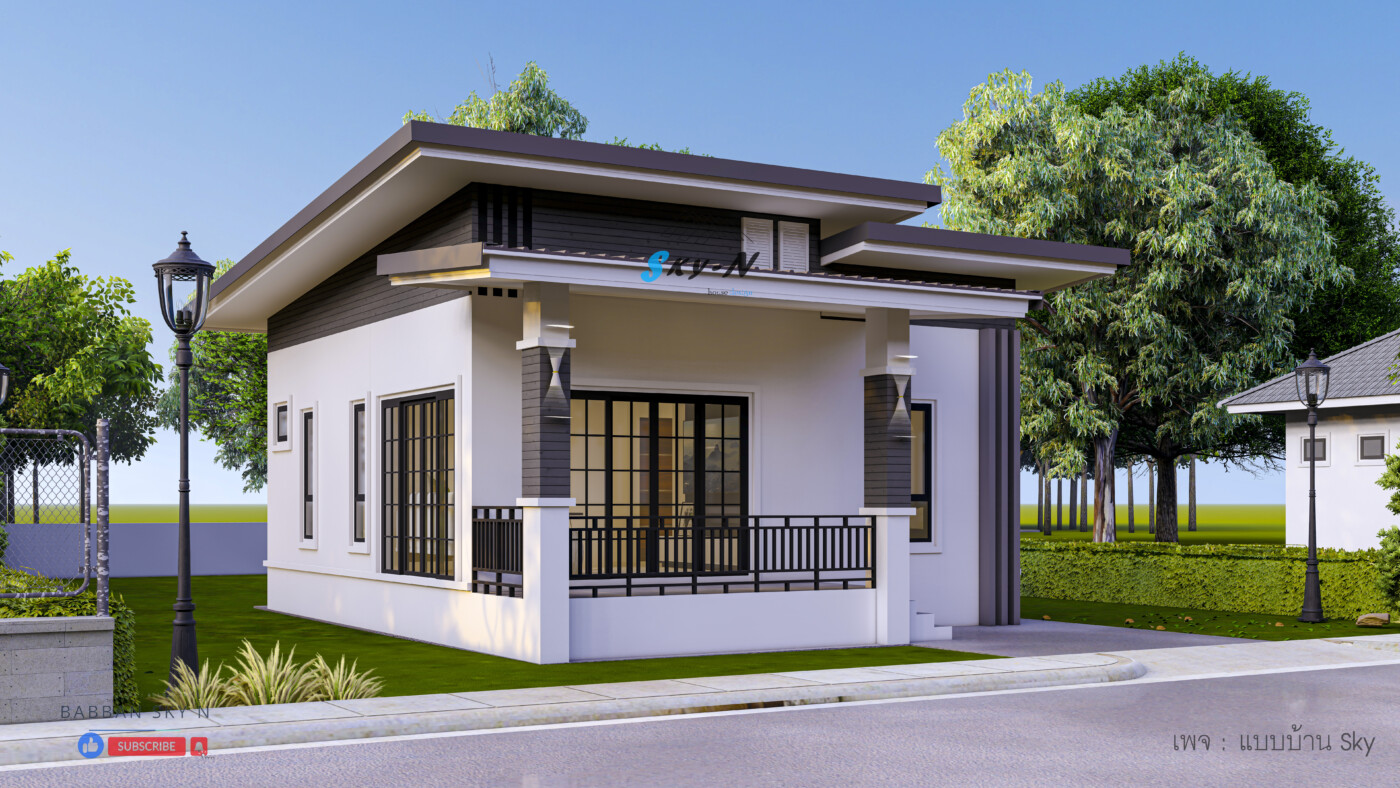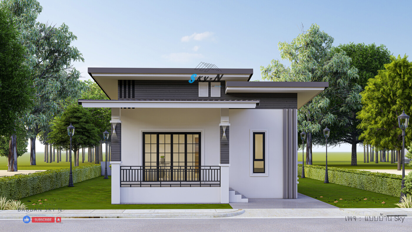 แบบบ้านชั้นเดียวสไตล์โมเดิร์นร่วมสมัย (Modern Contemporary) มีการใช้เส้นสายที่ชัดเจนและทรงหลังคาเพิงแหงน (Shed Roof) ซ้อนชั้น ช่วยสร้างมิติและความทันสมัยให้กับรูปทรงอาคาร ขนาดกะทัดรัดเหมาะกับครอบครัวขนาดเล็กถึงกลาง บ้าน เหมาะกับการอยู่อาศัยที่ต้องการความทันสมัย เรียบหรู และฟังก์ชันครบถ้วน