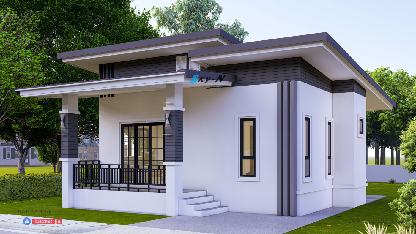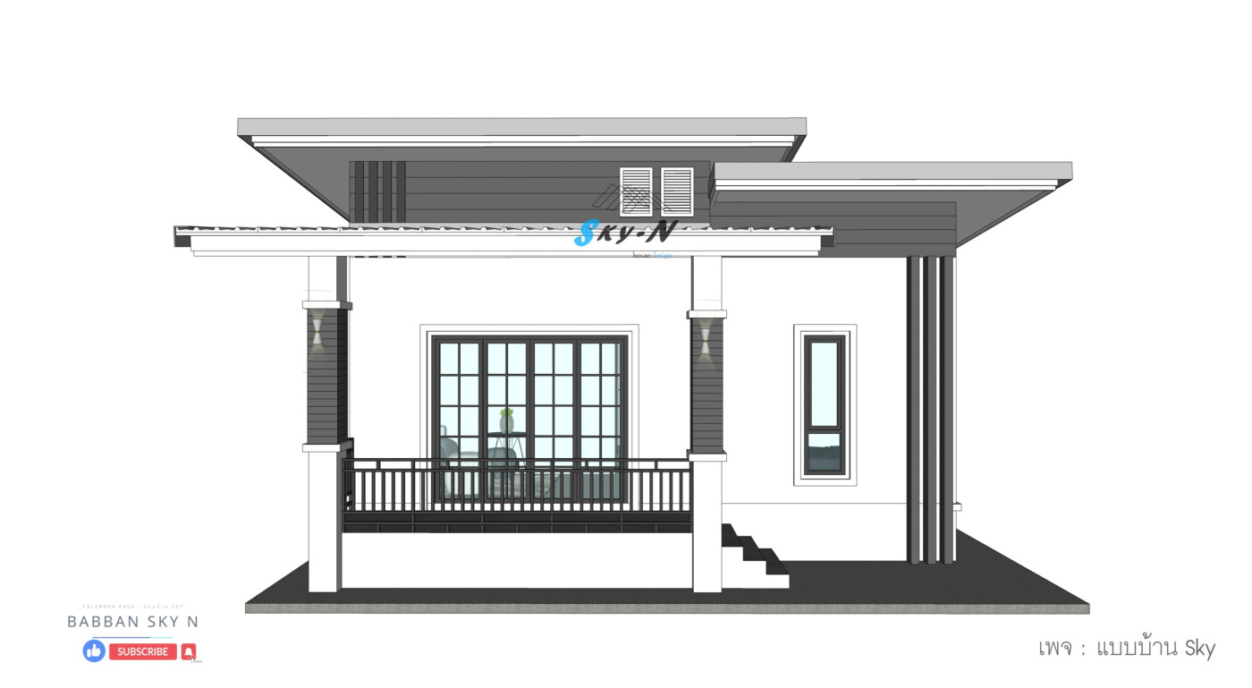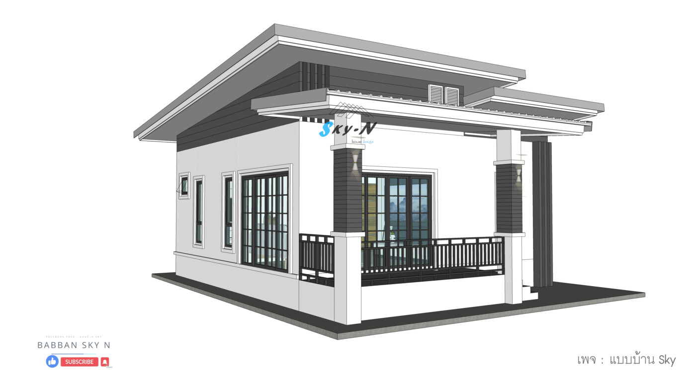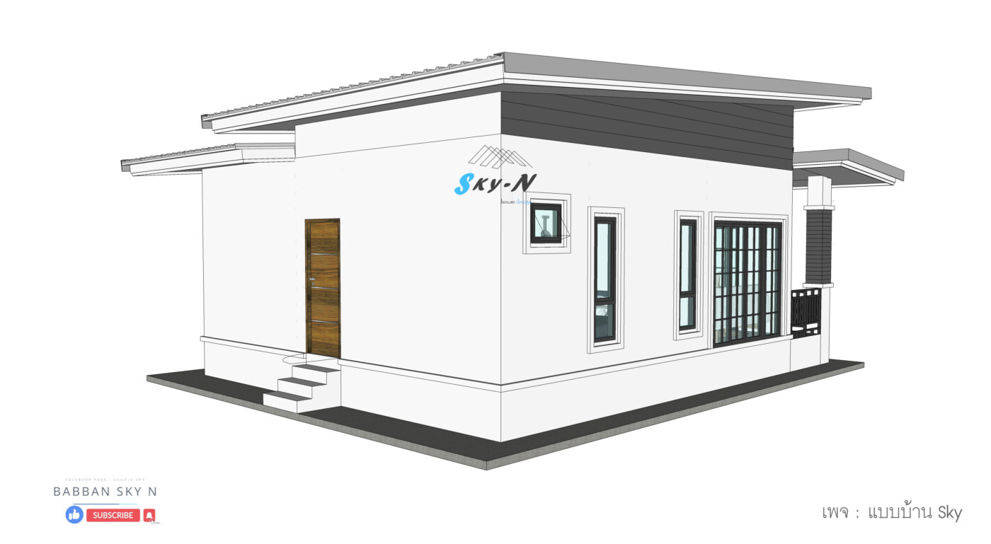 แบบบ้านชั้นเดียวสไตล์โมเดิร์นร่วมสมัย (Modern Contemporary) มีการใช้เส้นสายที่ชัดเจนและทรงหลังคาเพิงแหงน (Shed Roof) ซ้อนชั้น ช่วยสร้างมิติและความทันสมัยให้กับรูปทรงอาคาร ขนาดกะทัดรัดเหมาะกับครอบครัวขนาดเล็กถึงกลาง บ้าน เหมาะกับการอยู่อาศัยที่ต้องการความทันสมัย เรียบหรู และฟังก์ชันครบถ้วน
