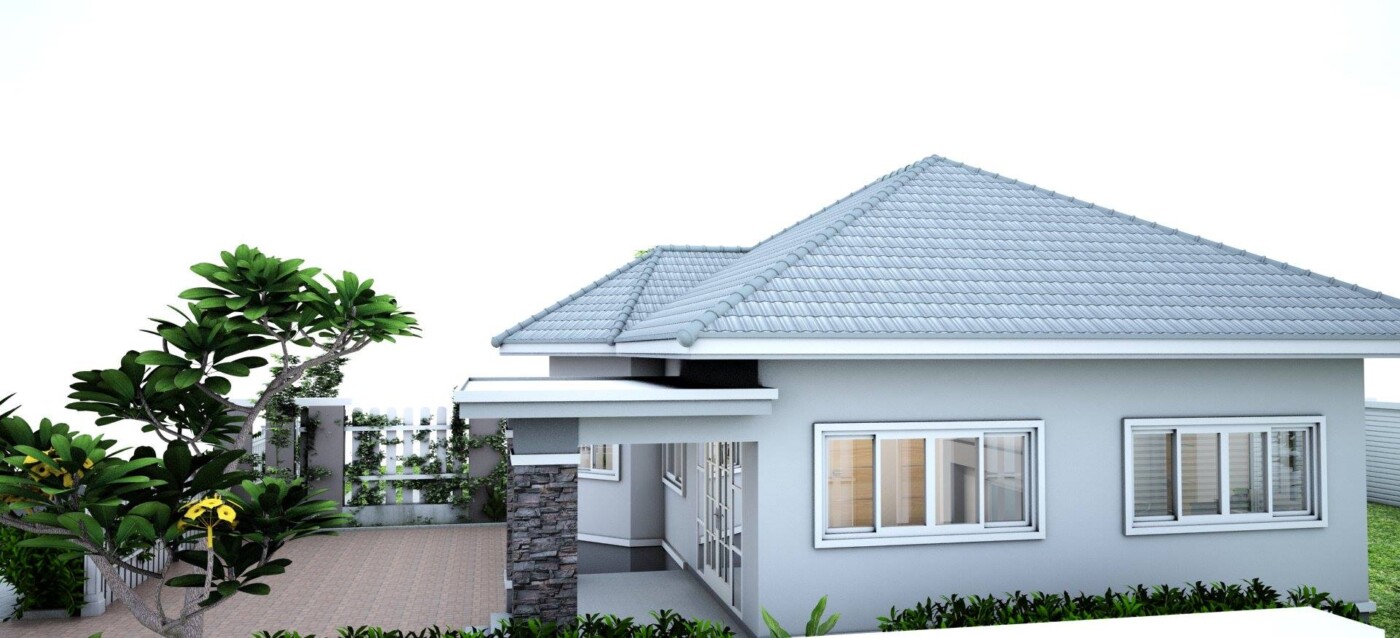 แบบบ้านชั้นเดียว สไตล์ร่วมสมัยไทยประยุกต์ (Thai Contemporary Style) ซึ่งผสมผสานความเป็นบ้านไทยดั้งเดิมกับแนวคิดสมัยใหม่ โดยยังคงความเรียบร้อย อบอุ่น และเหมาะสมกับสภาพแวดล้อมเขตร้อนชื้นของประเทศไทย