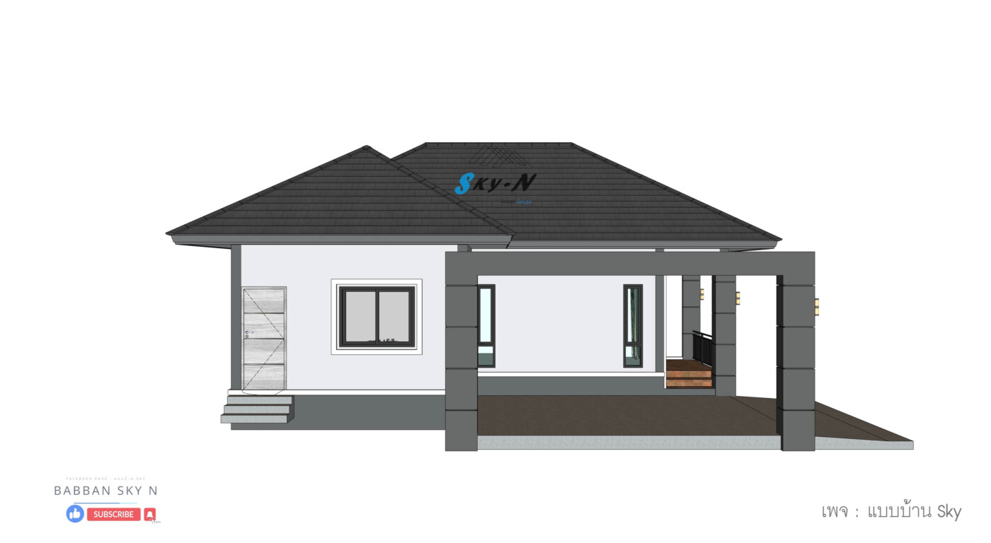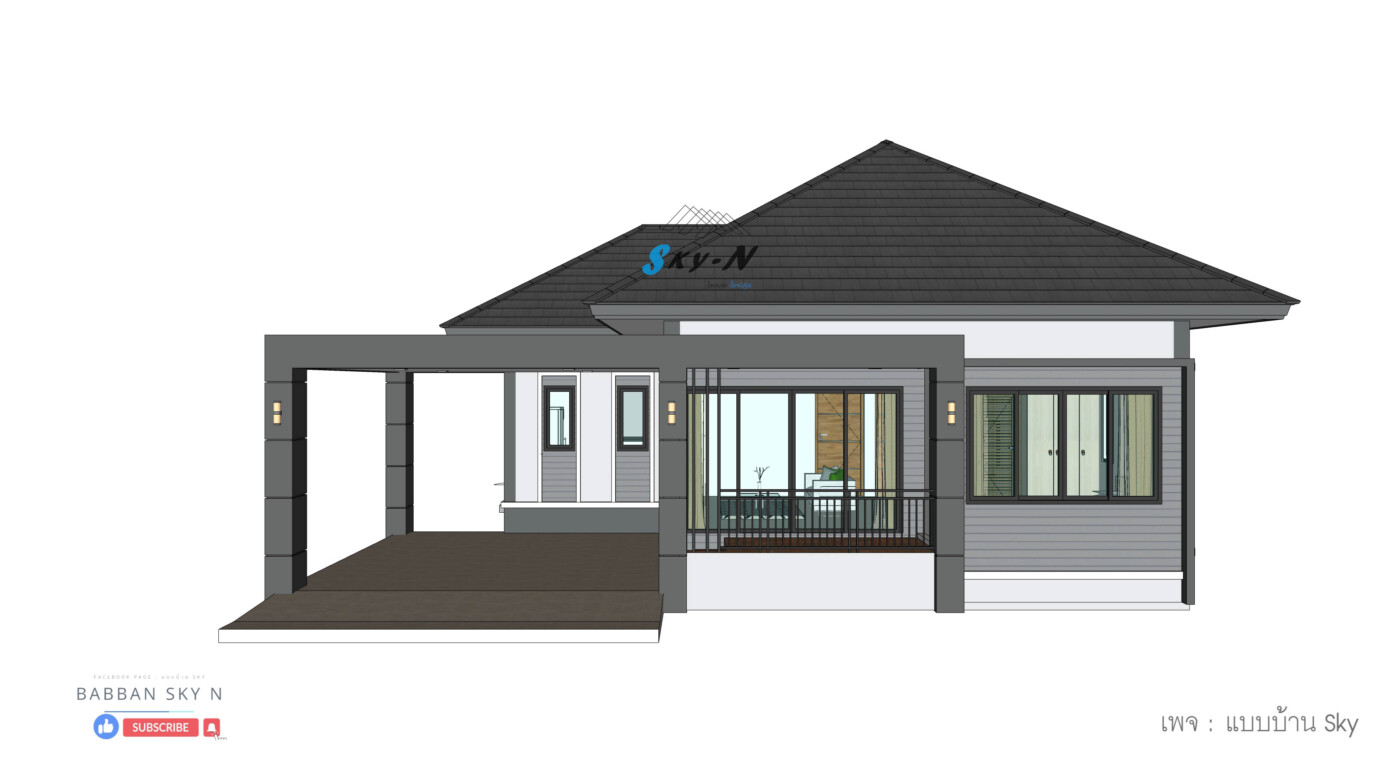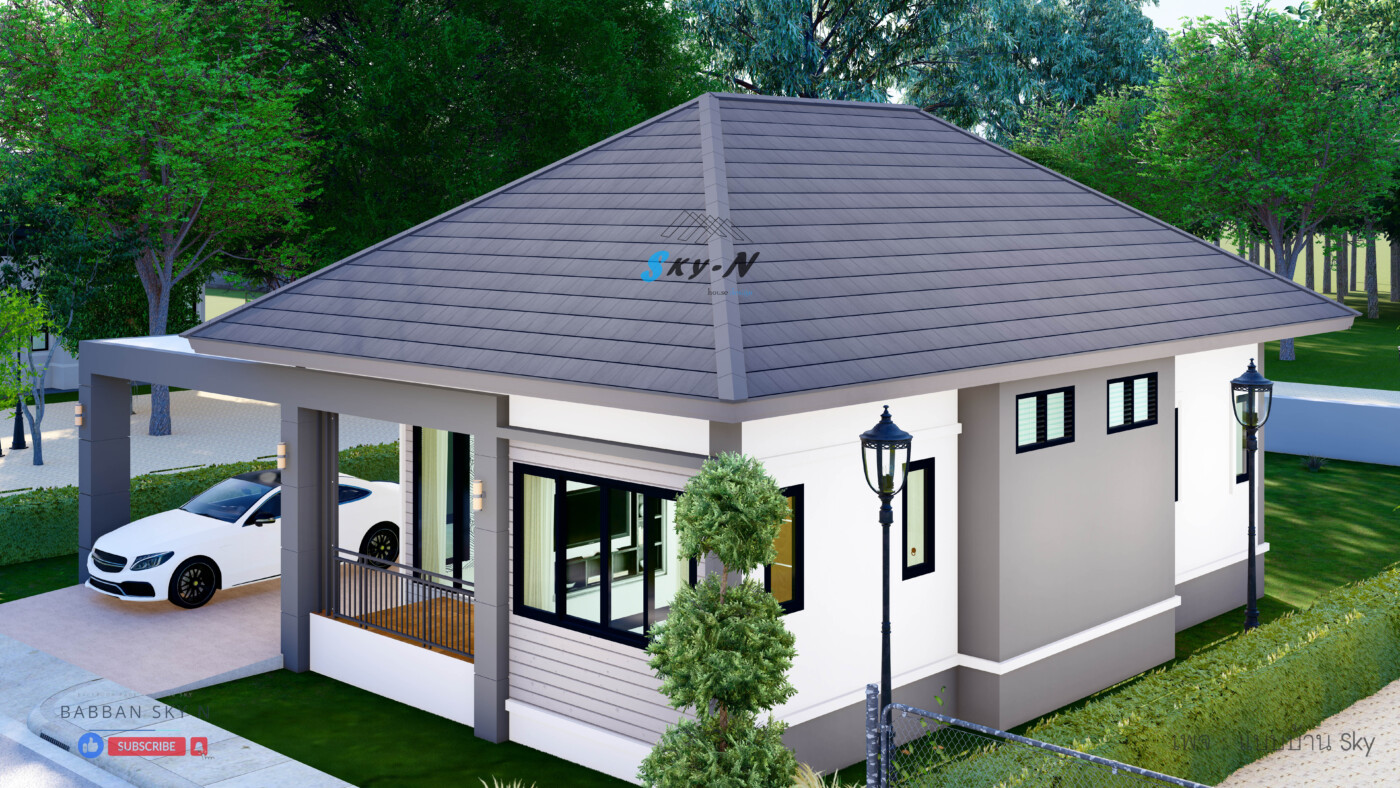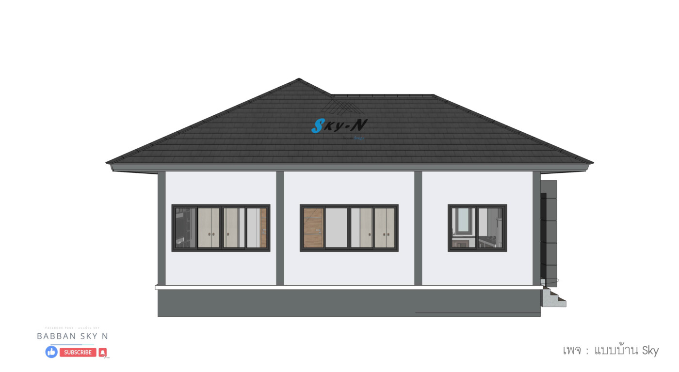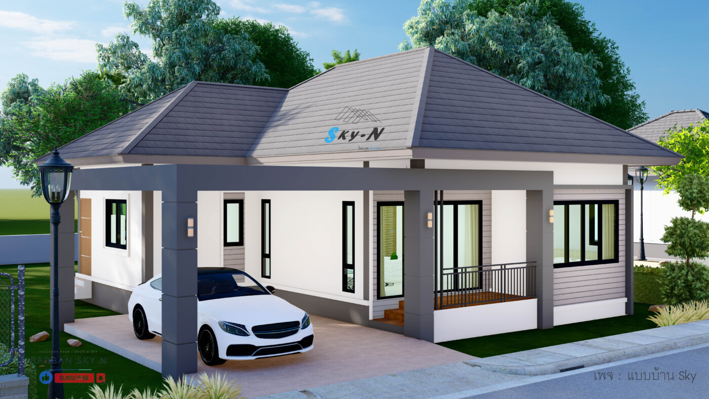 บ้านชั้นเดียวสไตล์ Modern Contemporary ที่เน้นการออกแบบที่ตอบโจทย์การใช้งานจริง พร้อมให้ความรู้สึกทันสมัยแบบสุภาพ และเรียบหรู โดดเด่นด้วยหลังคาทรงปั้นหยาที่มอบภาพลักษณ์แข็งแรงน่าเชื่อถือ ผสมผสานกับดีเทลแนวโมเดิร์นอย่างลงตัว