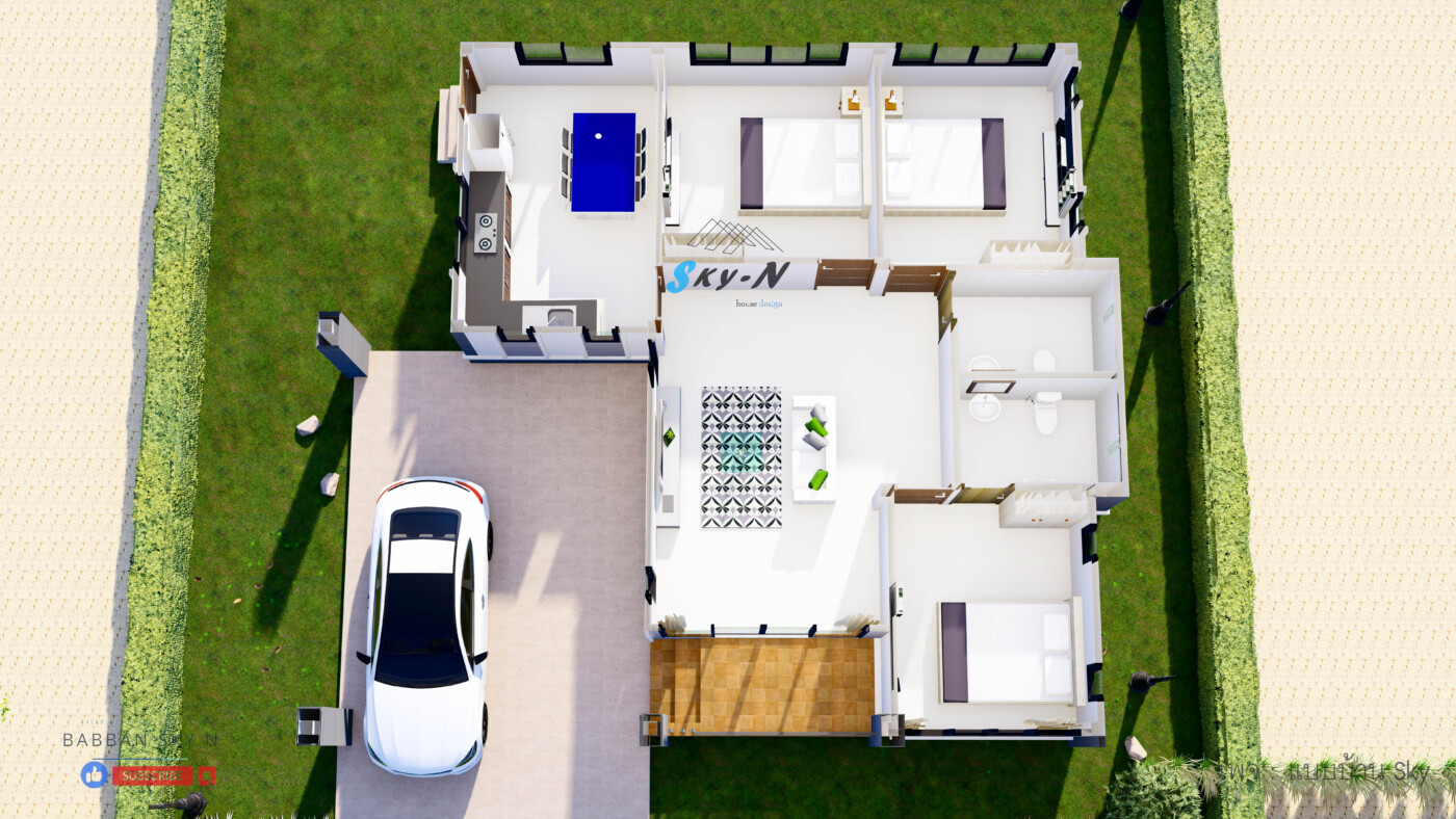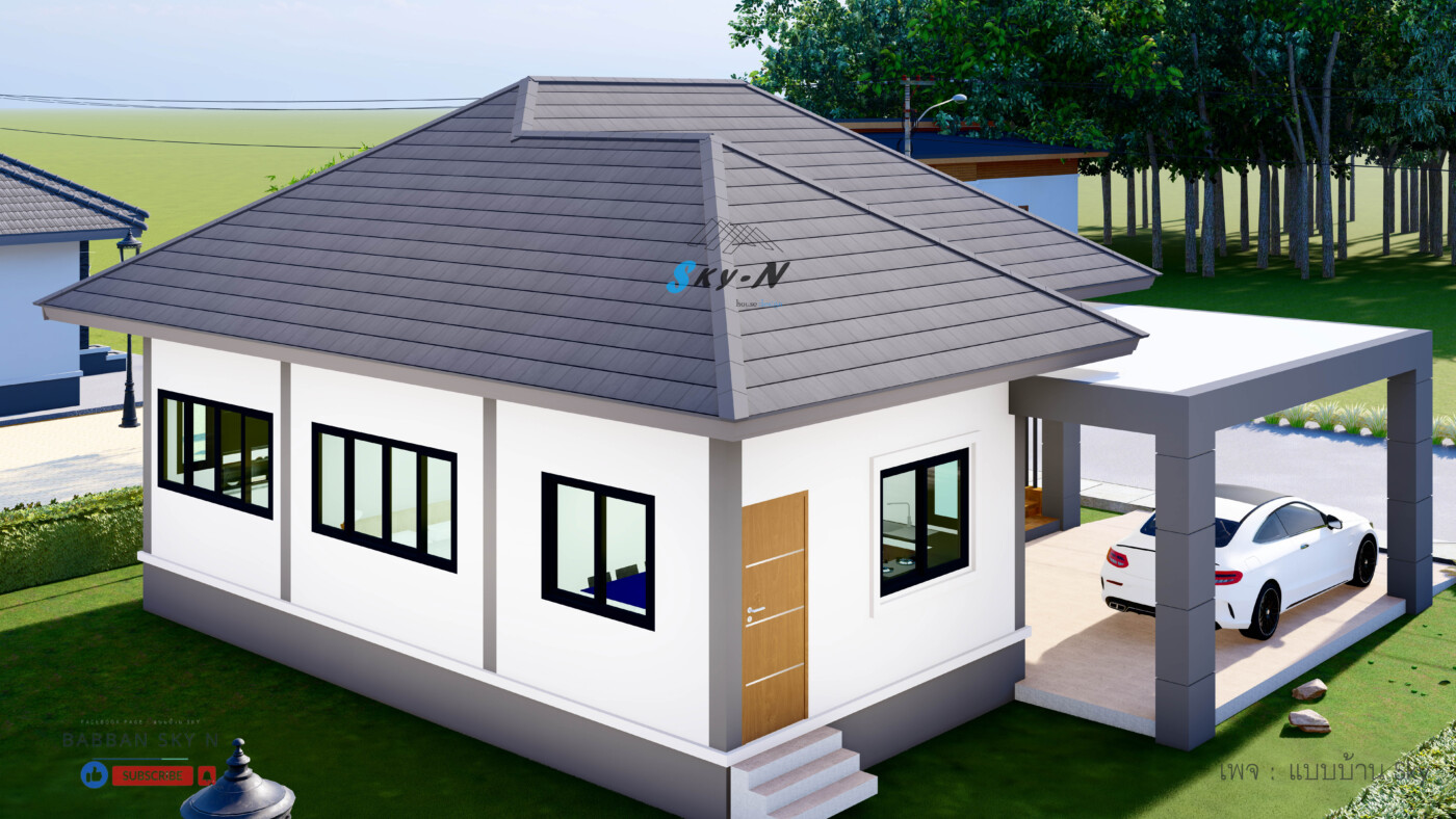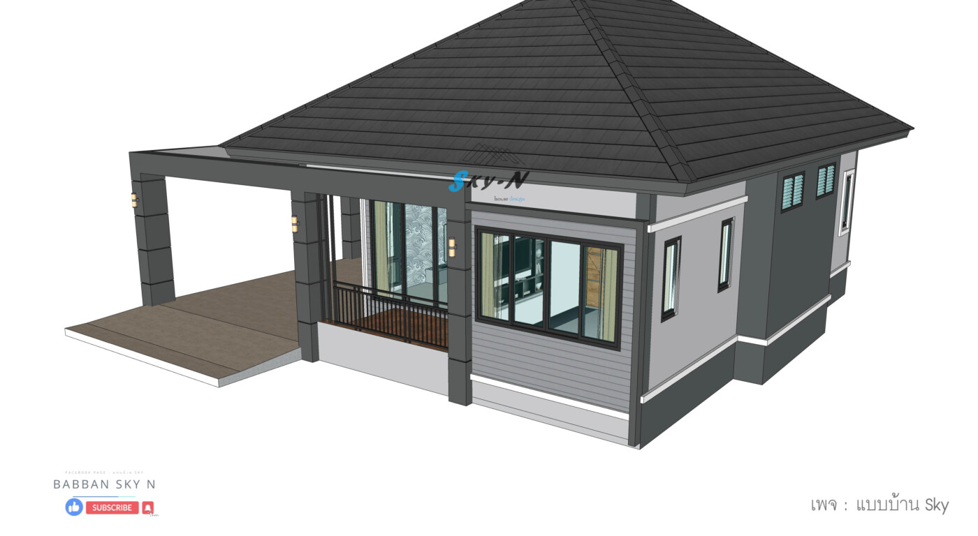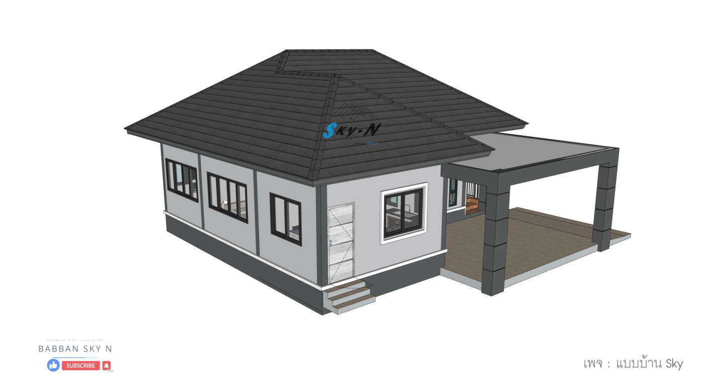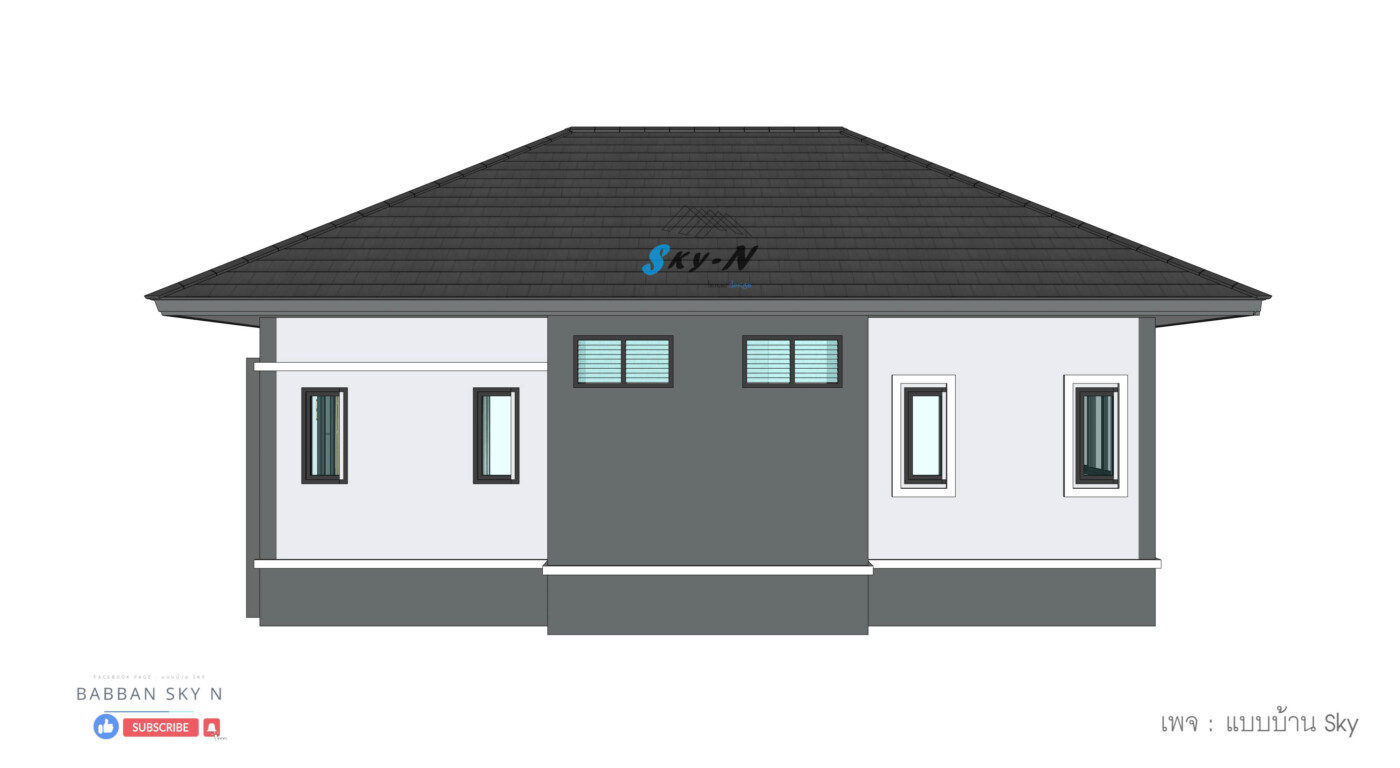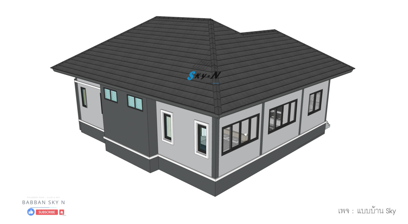 บ้านชั้นเดียวสไตล์ Modern Contemporary ที่เน้นการออกแบบที่ตอบโจทย์การใช้งานจริง พร้อมให้ความรู้สึกทันสมัยแบบสุภาพ และเรียบหรู โดดเด่นด้วยหลังคาทรงปั้นหยาที่มอบภาพลักษณ์แข็งแรงน่าเชื่อถือ ผสมผสานกับดีเทลแนวโมเดิร์นอย่างลงตัว